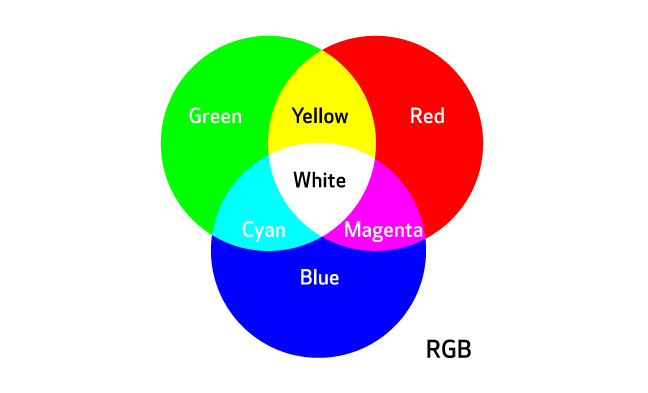 Computer monitors inhabit the RGB color space, or gamut, because they project colors using red, green, and blue light. RGB can be described as “additive” color because it’s created with light—the more light that’s added, the lighter and brighter the colors become. For example, if you intersect a red circle and a blue circle on a monitor, you’ll see a bright magenta. If you intersect red, green, and blue circles, you’ll see white at the center.