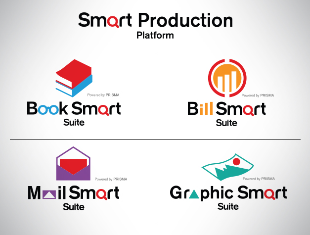 Book Smart Suite already sported an eye-catching descriptive logo that definitely told a story—apologies for the pun. Our challenge was creating three more equally compelling product logos that would clearly represent the other market segments, plus an umbrella logo for the entire Smart Production Platform.