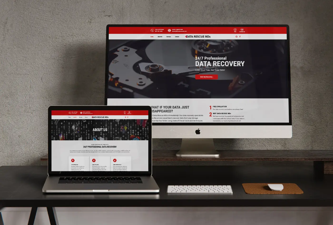 Two iphones showing the Data Rescue MDs website that builds confidence in the company’s expertise and reliability